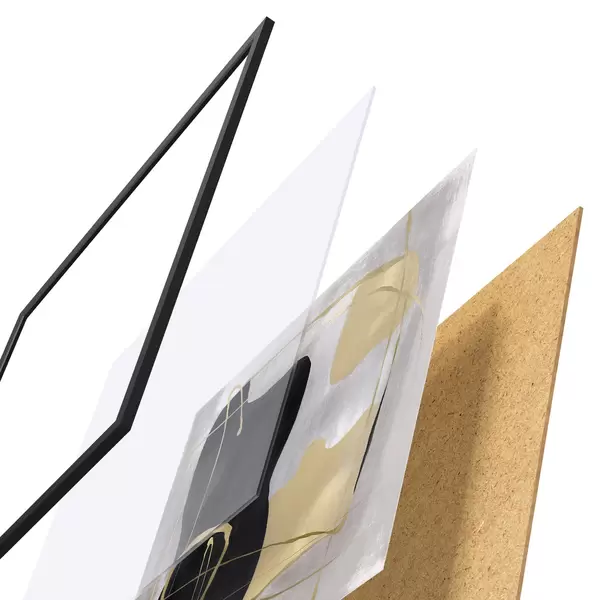 El póster consta de marco, plexiglás, imagen impresa y soporte de aglomerado. El póster puede colgarse inmediatamente en la pared gracias a los soportes de la parte posterior.