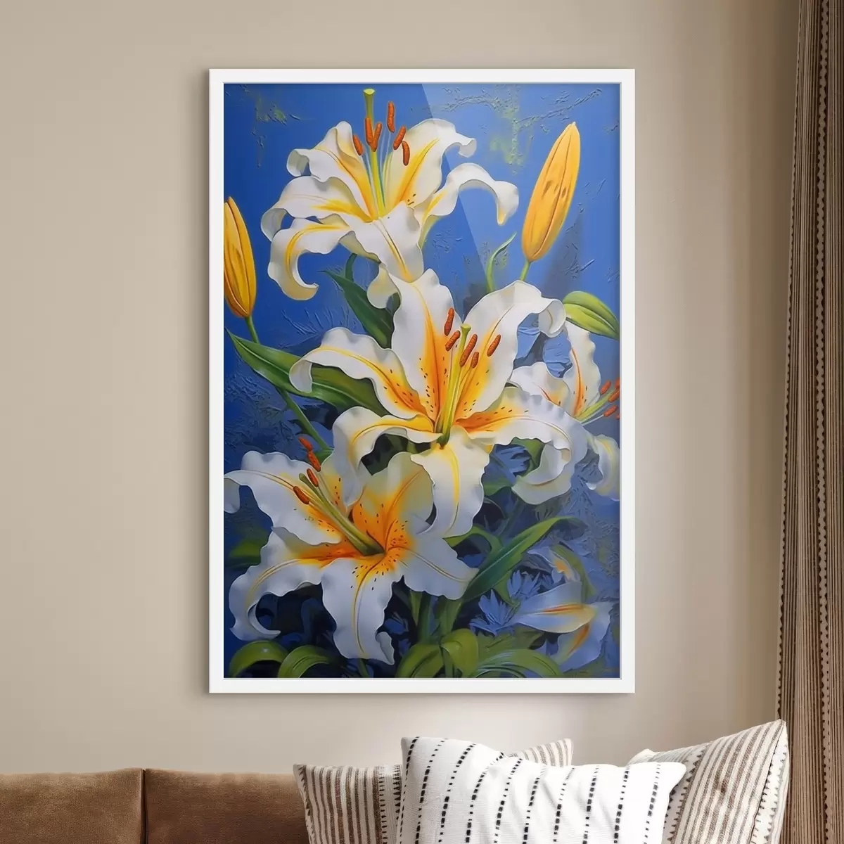 Poster Lirios blancos sobre fondo azul Nr f43018