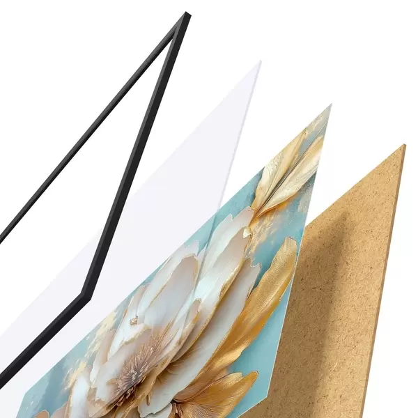 El póster consta de marco, plexiglás, imagen impresa y soporte de aglomerado. El póster puede colgarse inmediatamente en la pared gracias a los soportes de la parte posterior.