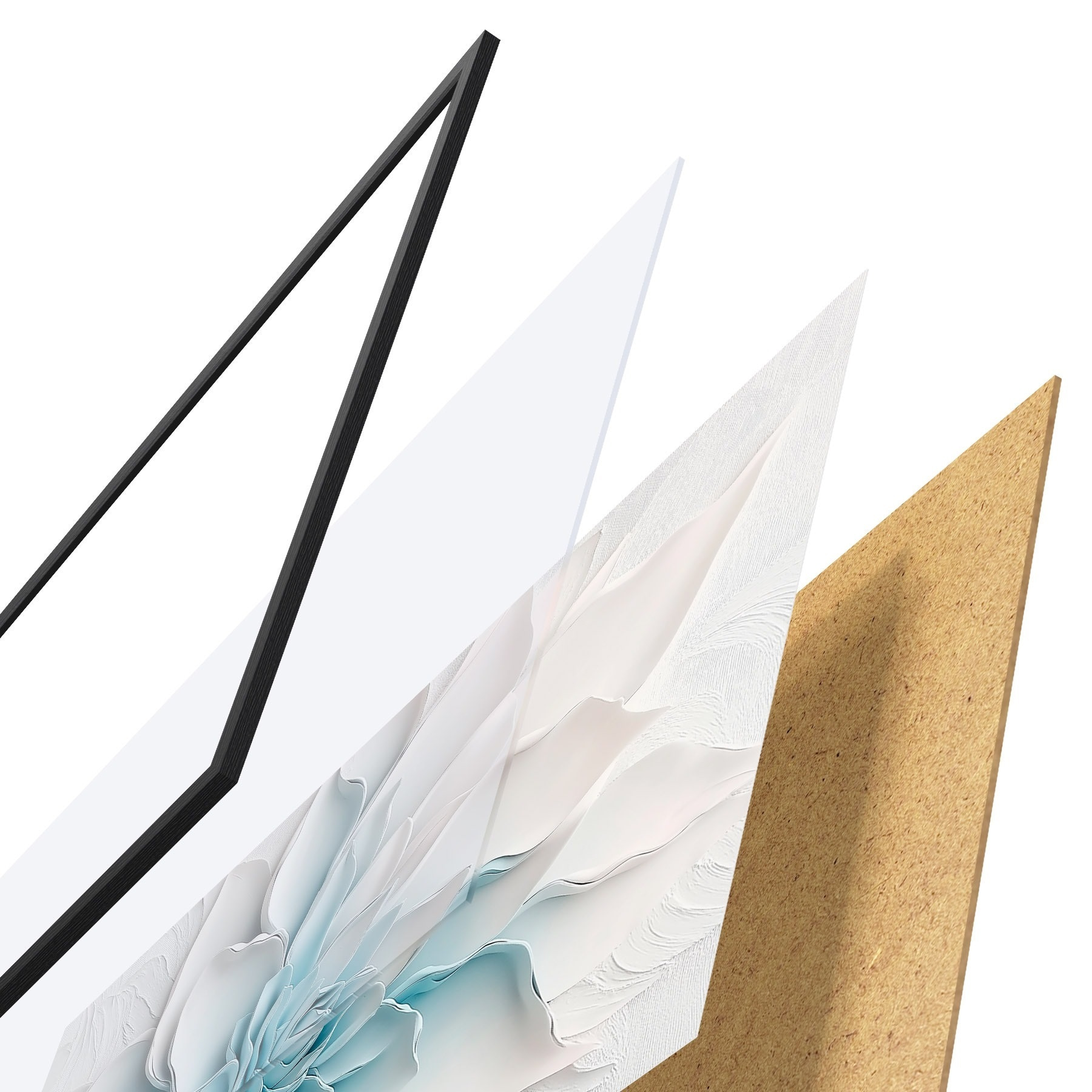 El póster consta de marco, plexiglás, imagen impresa y soporte de aglomerado. El póster puede colgarse inmediatamente en la pared gracias a los soportes de la parte posterior.