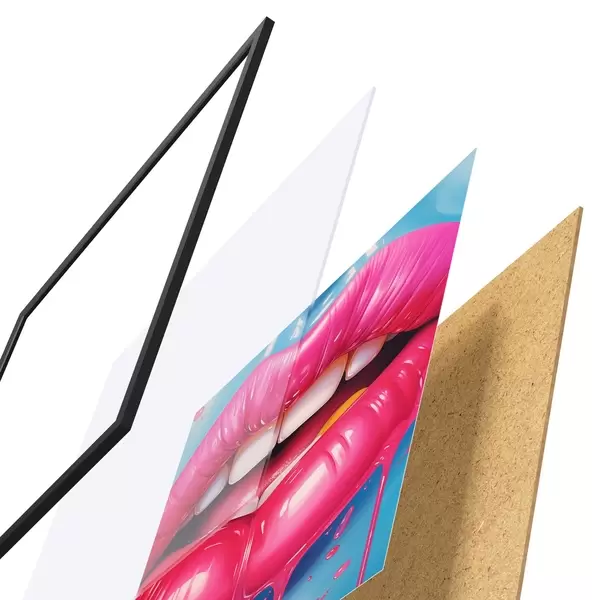 El póster consta de marco, plexiglás, imagen impresa y soporte de aglomerado. El póster puede colgarse inmediatamente en la pared gracias a los soportes de la parte posterior.