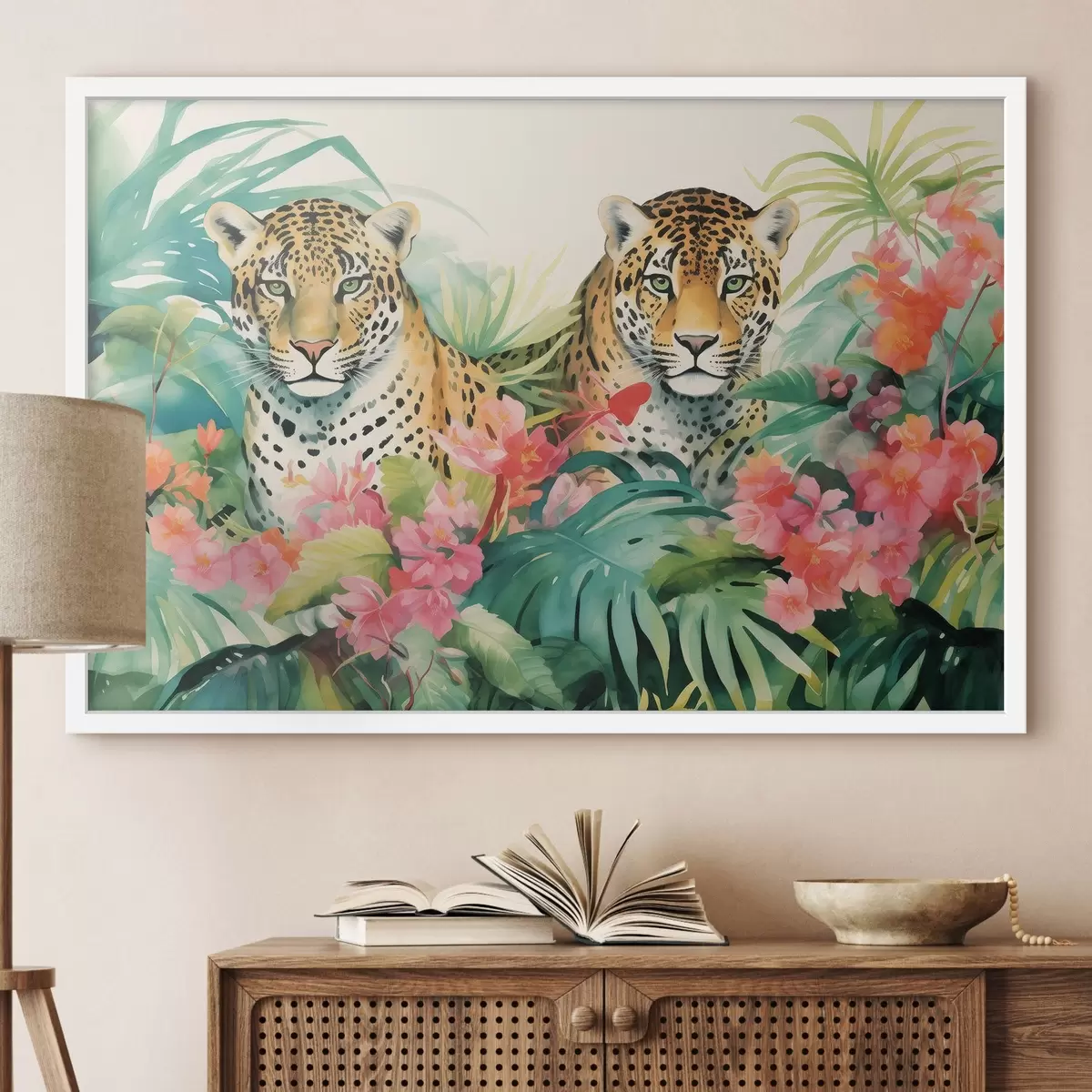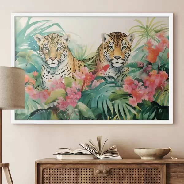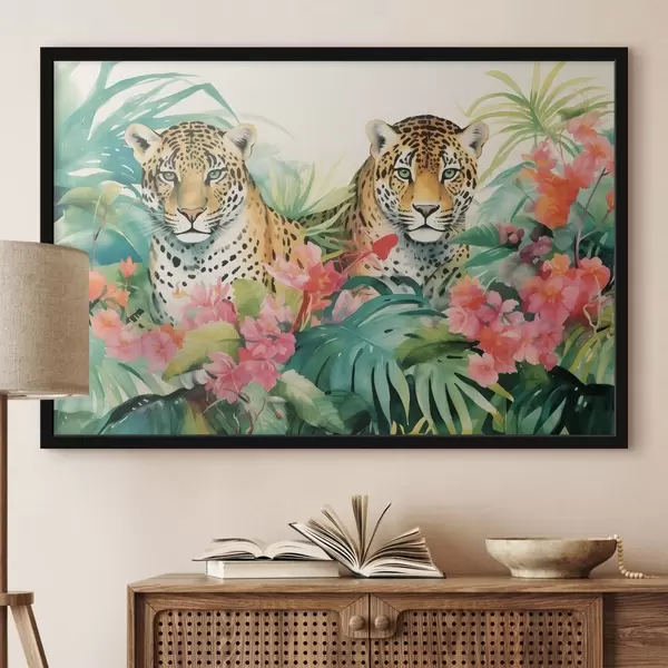 Poster Una pareja de leopardos en matorrales tropicales Nr f43036