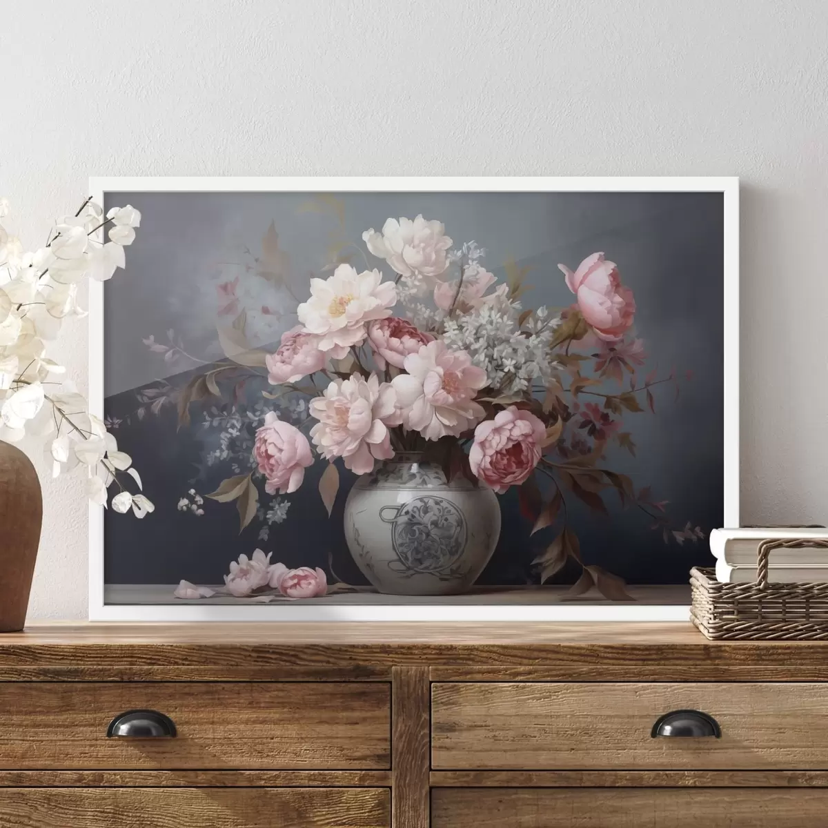 El póster consta de marco, plexiglás, imagen impresa y soporte de aglomerado. El póster puede colgarse inmediatamente en la pared gracias a los soportes de la parte posterior.