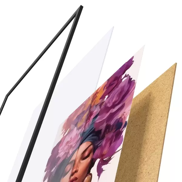 El póster consta de marco, plexiglás, imagen impresa y soporte de aglomerado. El póster puede colgarse inmediatamente en la pared gracias a los soportes de la parte posterior.