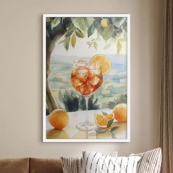 Poster Cóctel de verano, Aperol Spritz, naranjas, dibujo estilo acuarela Nr f43058