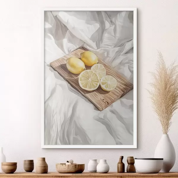 Poster Limones en la tabla de madera, acuarela, estilo rústico Nr f43064