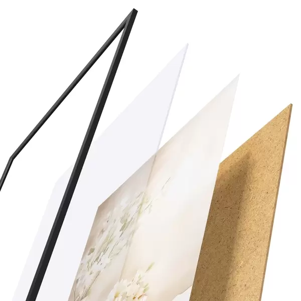 El póster consta de marco, plexiglás, imagen impresa y soporte de aglomerado. El póster puede colgarse inmediatamente en la pared gracias a los soportes de la parte posterior.
