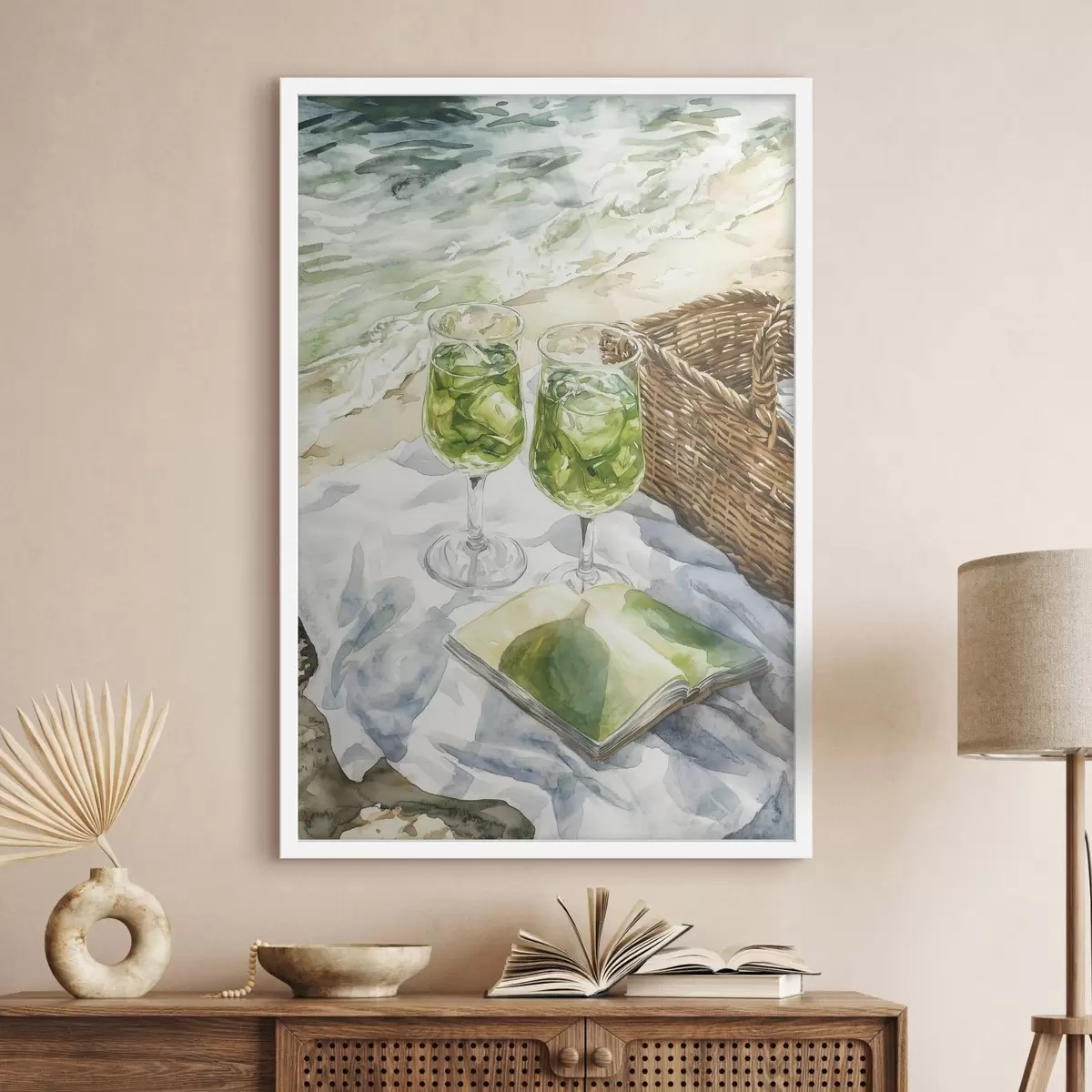 Poster Cócteles en la playa, dibujo estilo acuarela, océano, verano Nr f43067