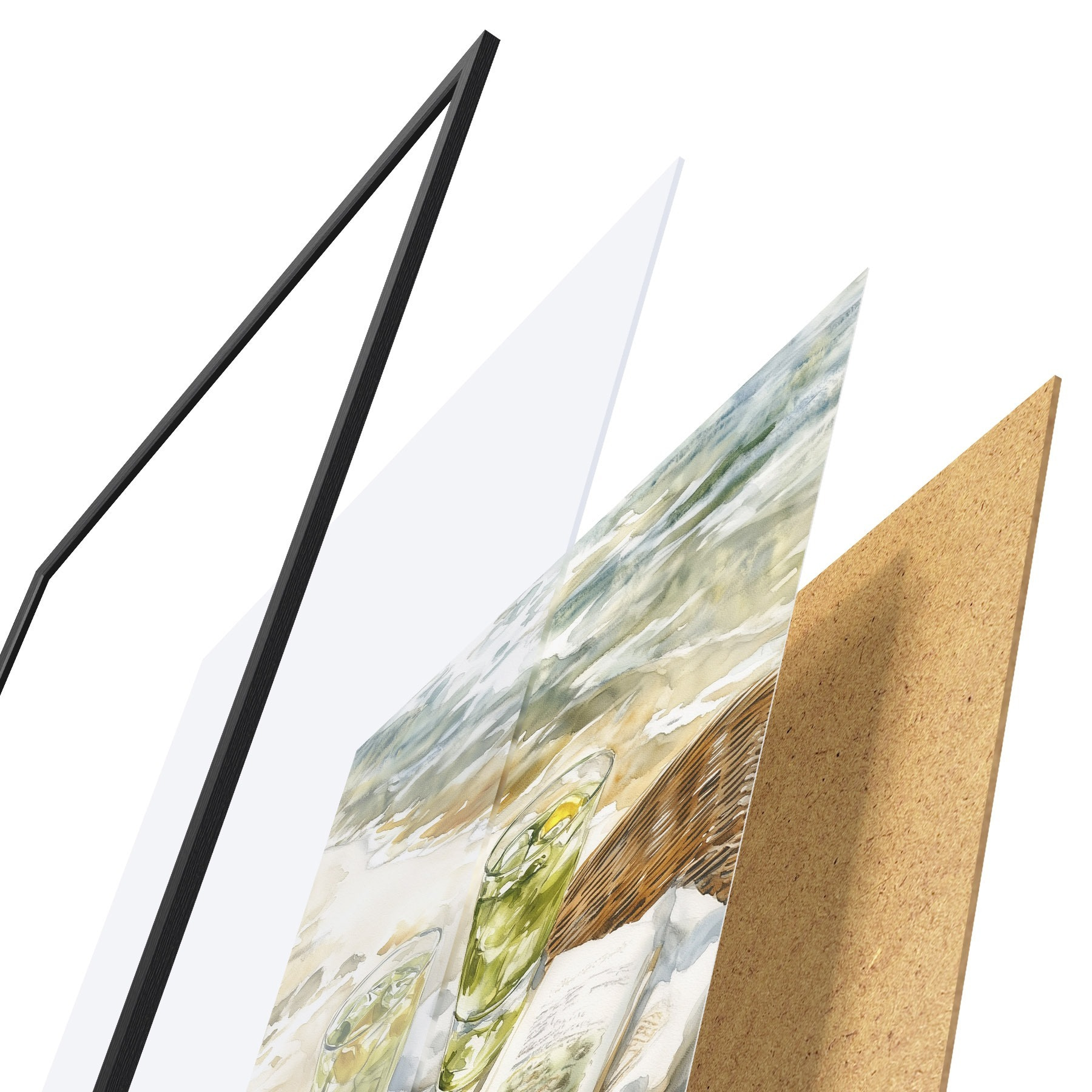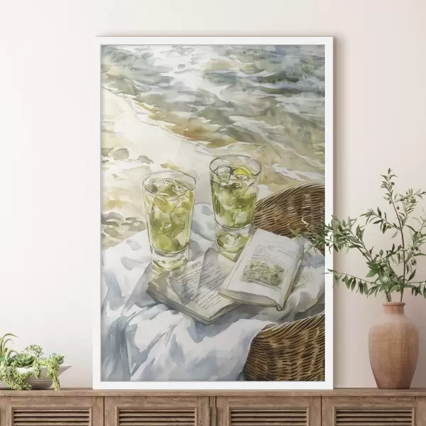 Poster Picnic cerca del mar, cócteles de verano, poesía, estilo acuarela Nr f43068