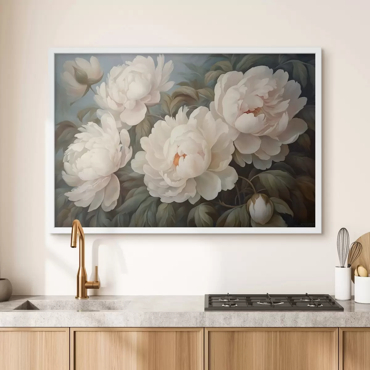 Poster Flores y hojas blancas en la niebla Nr f43091