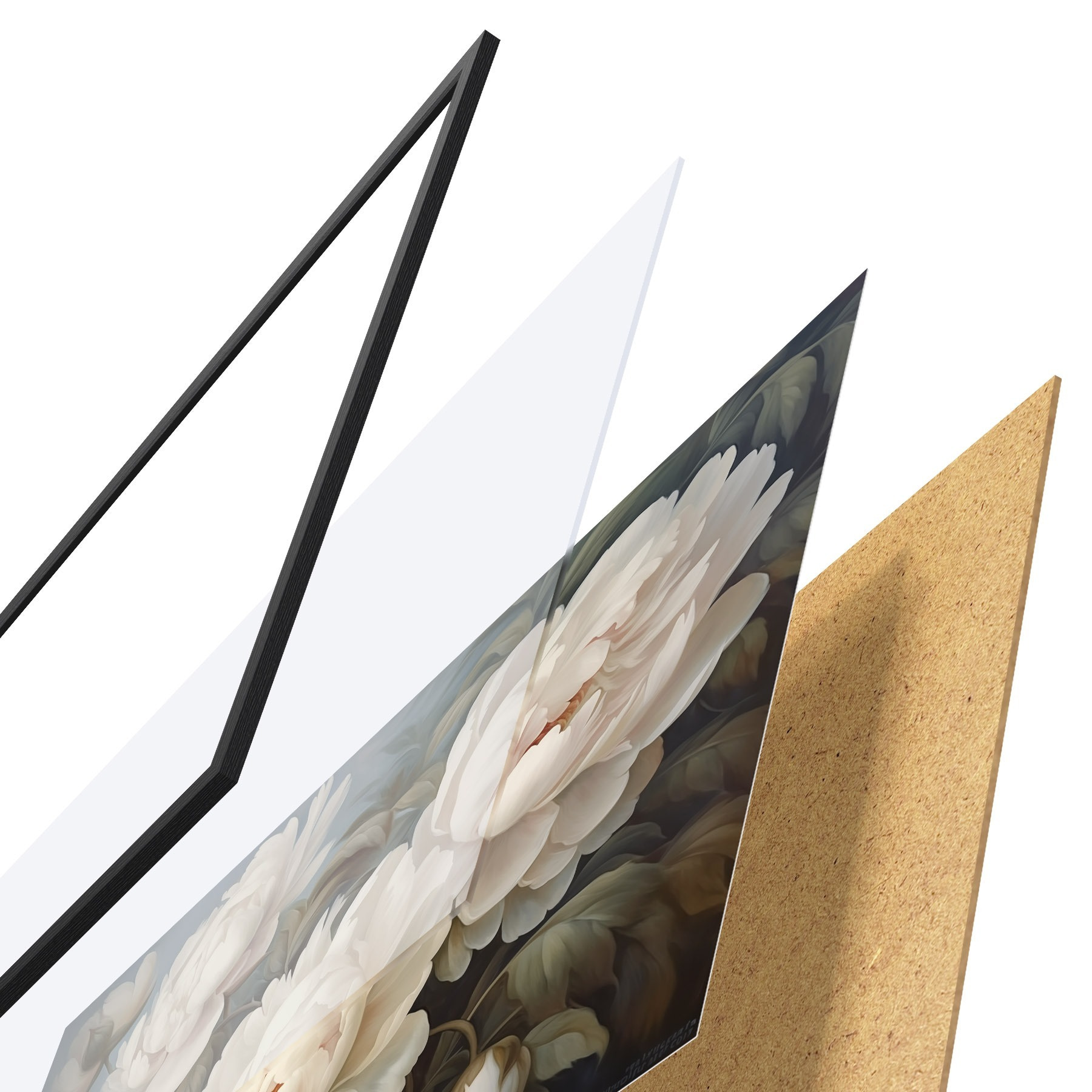 El póster consta de marco, plexiglás, imagen impresa y soporte de aglomerado. El póster puede colgarse inmediatamente en la pared gracias a los soportes de la parte posterior.