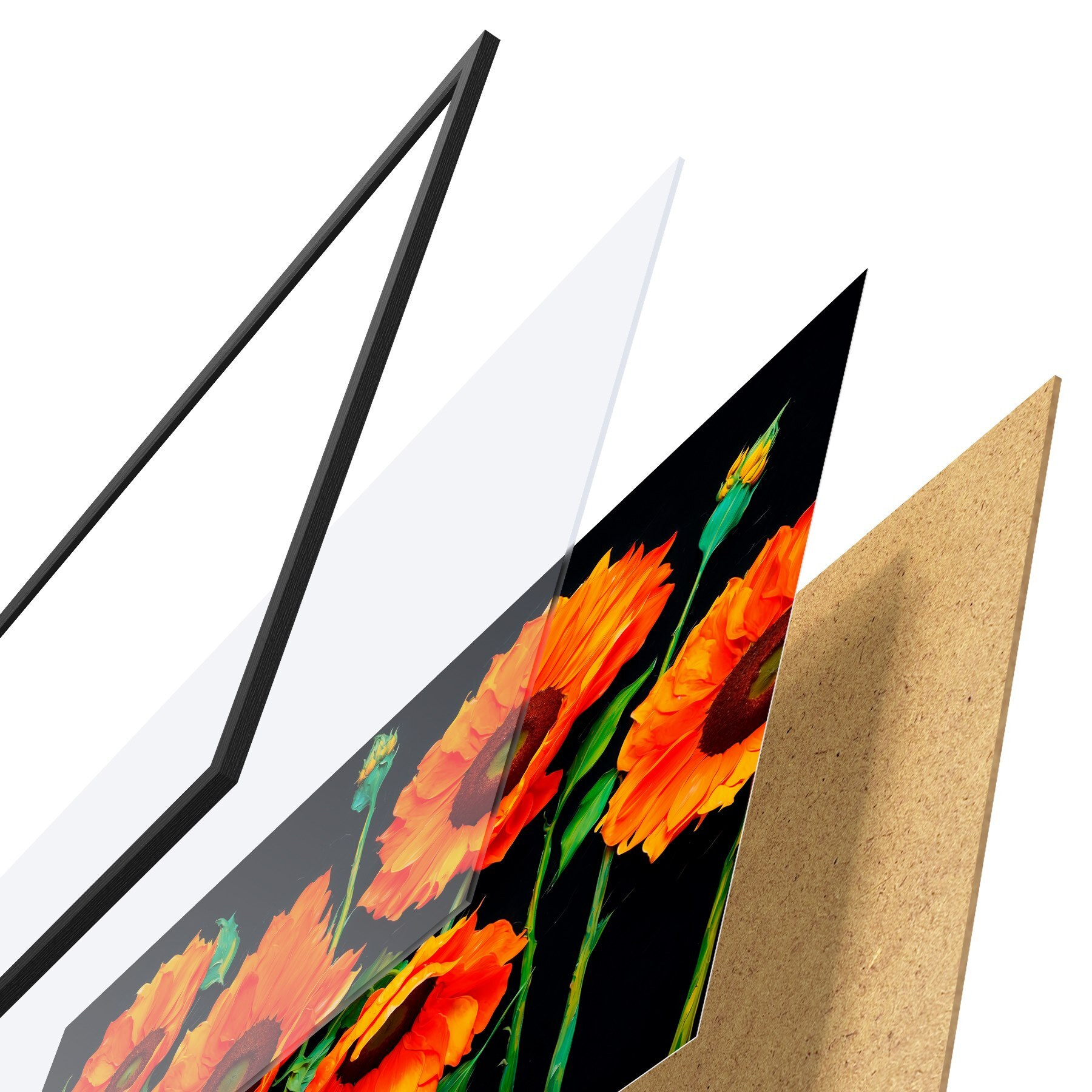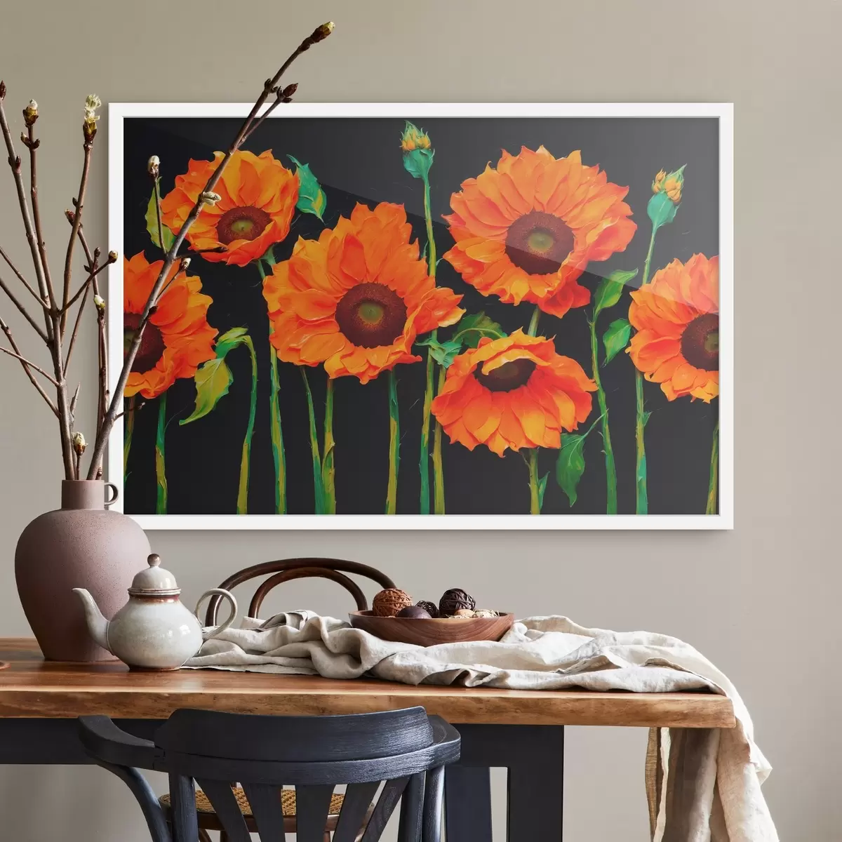 Poster Girasoles rojos sobre fondo oscuro Nr f43103