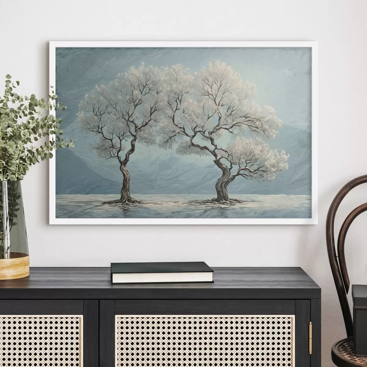 Poster Árboles blancos en estilo de pintura acrílica Nr f43112