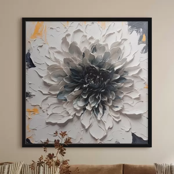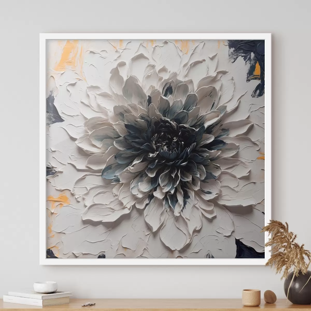 Poster Flor blanca con centro negro al óleo Nr f43113