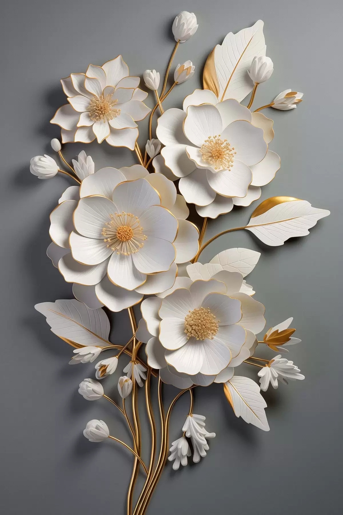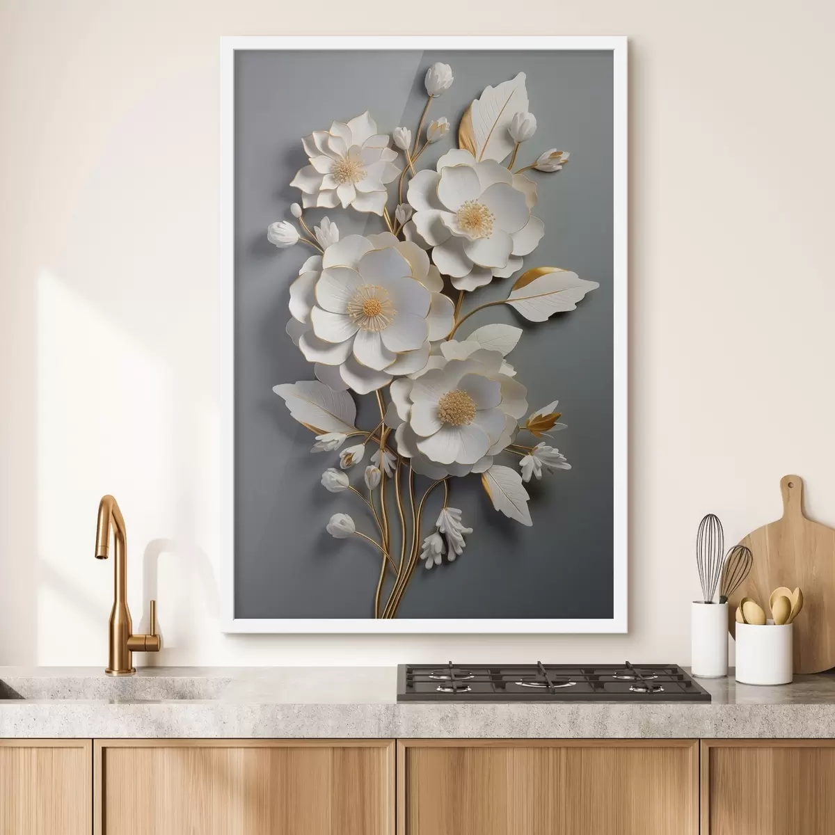 Poster Flores volumétricas sobre fondo gris Nr f43128