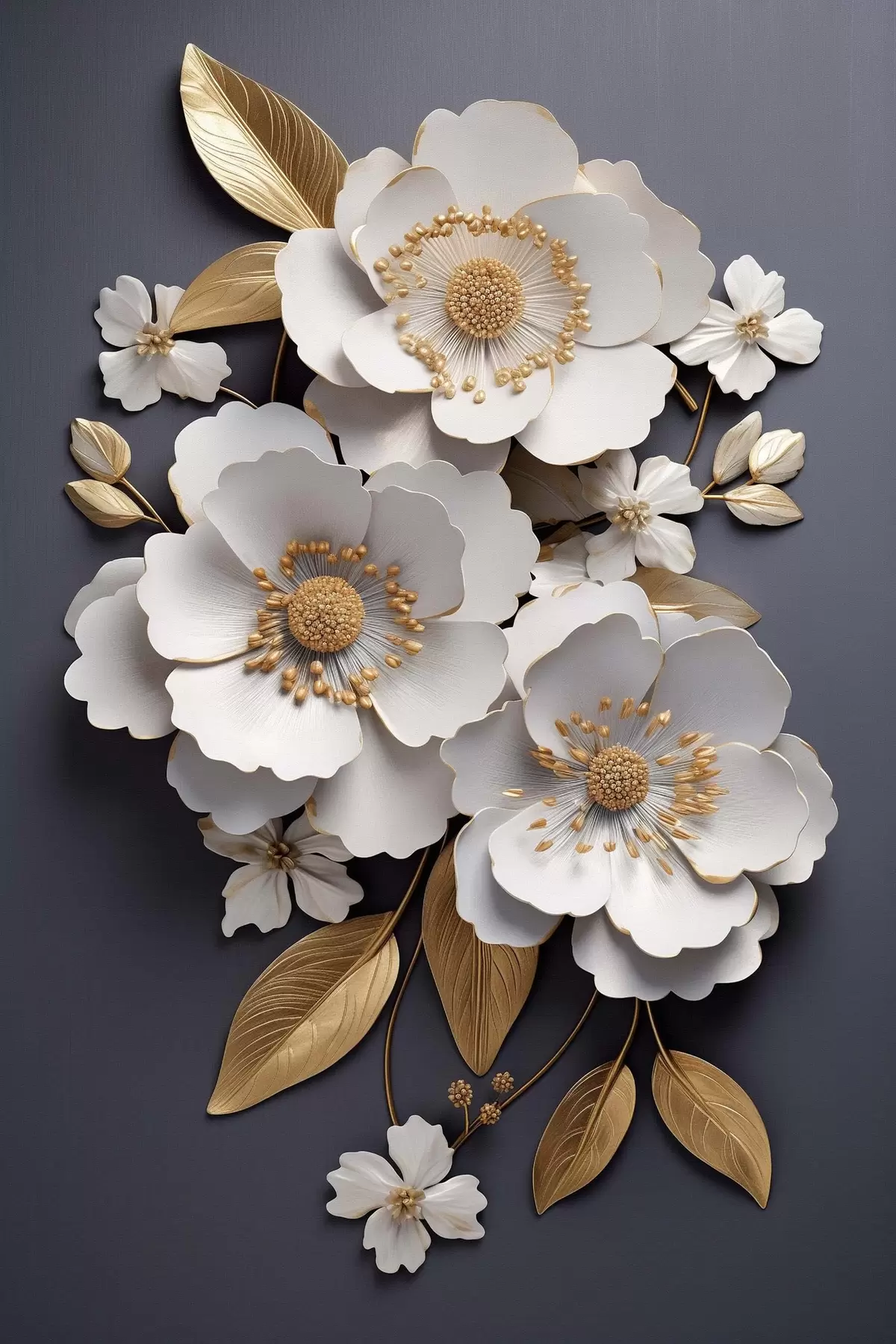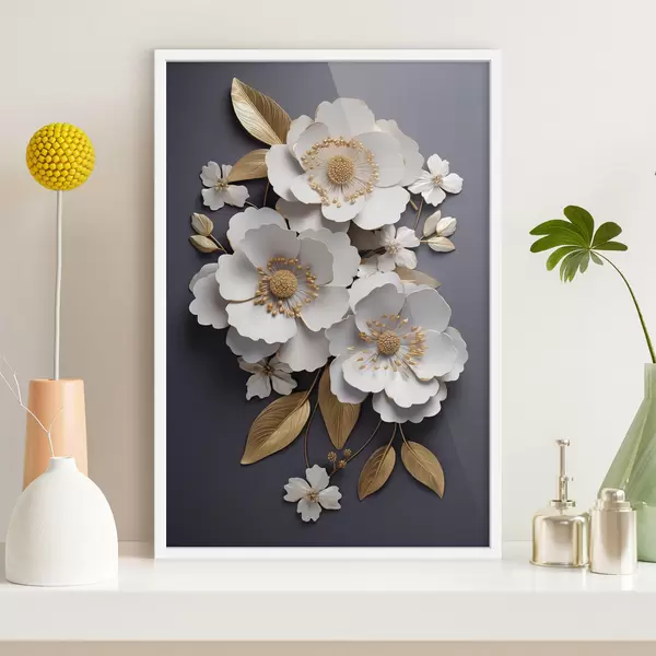 Poster Tres flores blancas sobre fondo oscuro Nr f43129