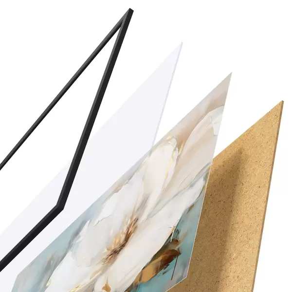 El póster consta de marco, plexiglás, imagen impresa y soporte de aglomerado. El póster puede colgarse inmediatamente en la pared gracias a los soportes de la parte posterior.