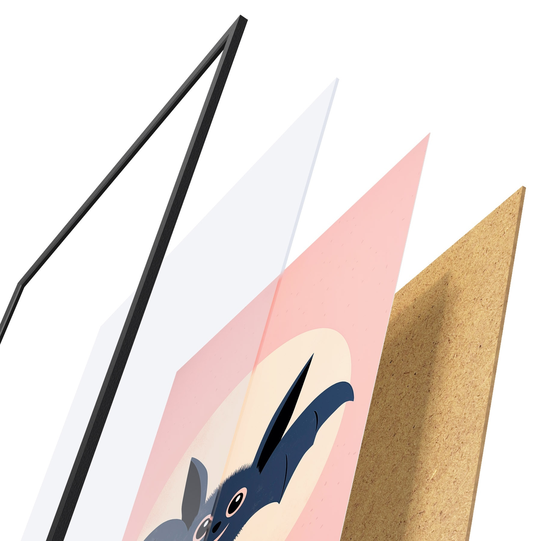 El póster consta de marco, plexiglás, imagen impresa y soporte de aglomerado. El póster puede colgarse inmediatamente en la pared gracias a los soportes de la parte posterior.
