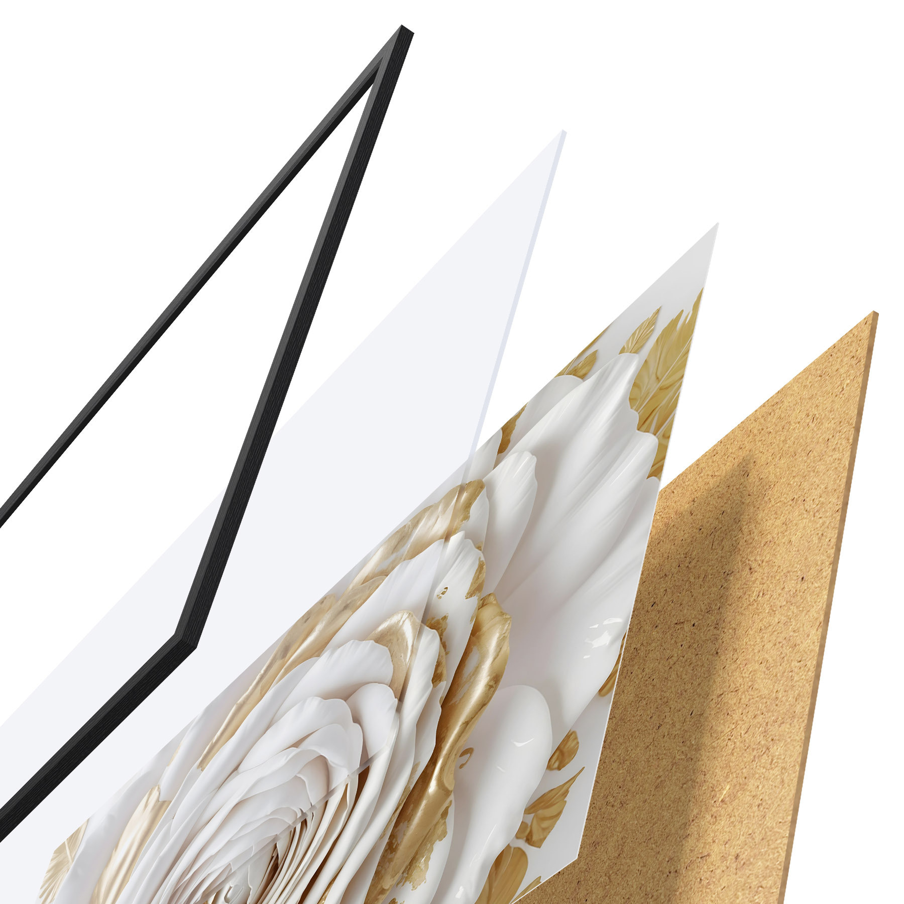 El póster consta de marco, plexiglás, imagen impresa y soporte de aglomerado. El póster puede colgarse inmediatamente en la pared gracias a los soportes de la parte posterior.