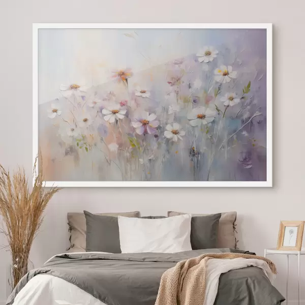 Poster Campo abstracto texturizado de flores blancas y rosas, suaves colores pastel, delicadas pinceladas, prado floral Nr f43170