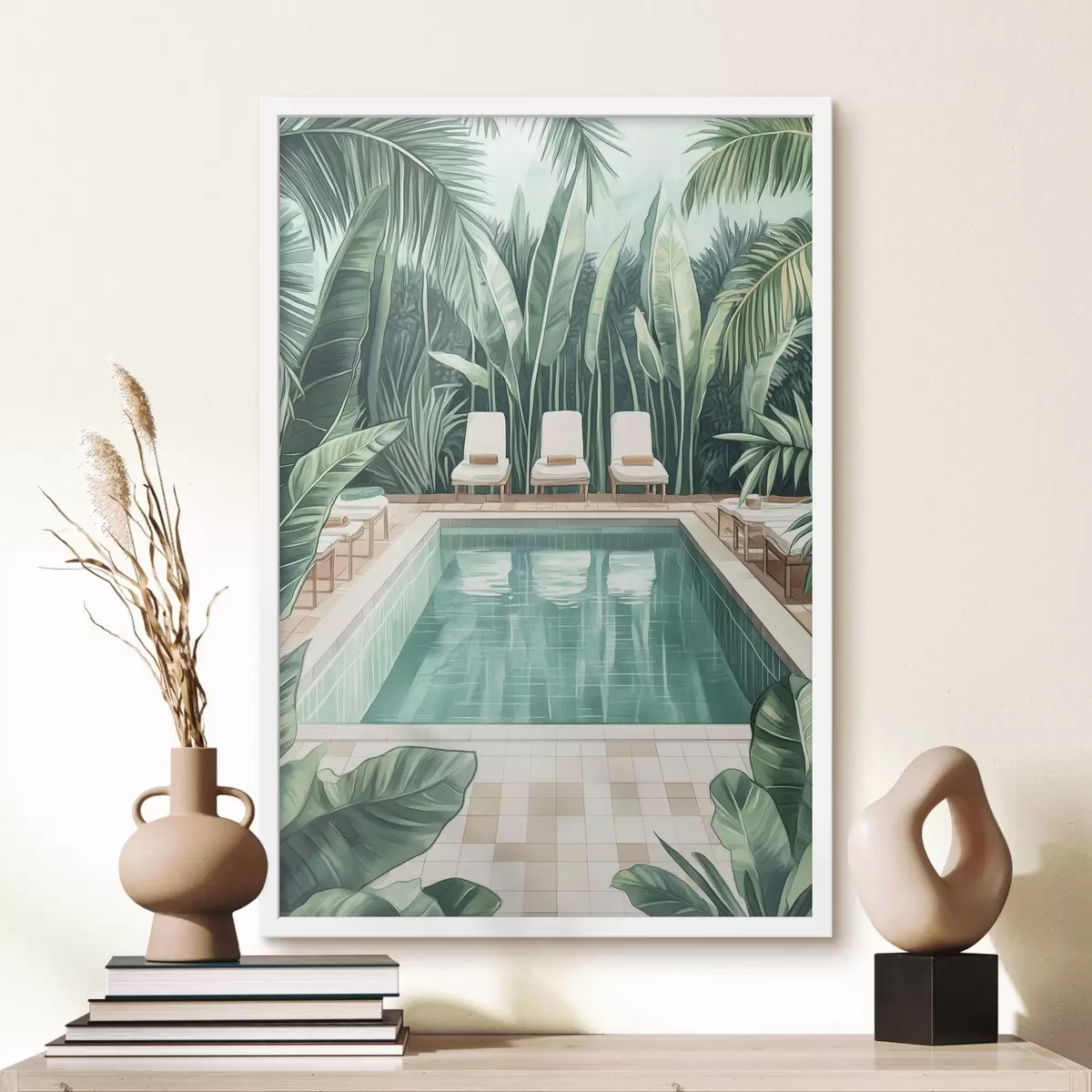 Poster Estética piscina de verano en el jardín tropical, estilo acuarela Nr f43192