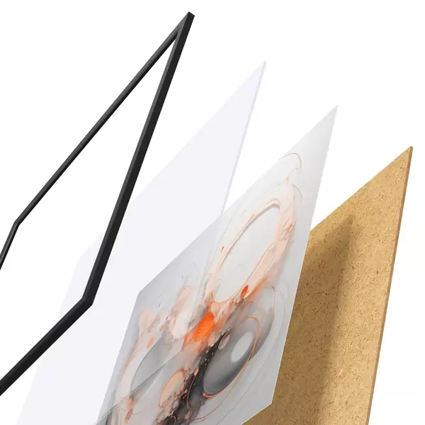 El póster consta de marco, plexiglás, imagen impresa y soporte de aglomerado. El póster puede colgarse inmediatamente en la pared gracias a los soportes de la parte posterior.