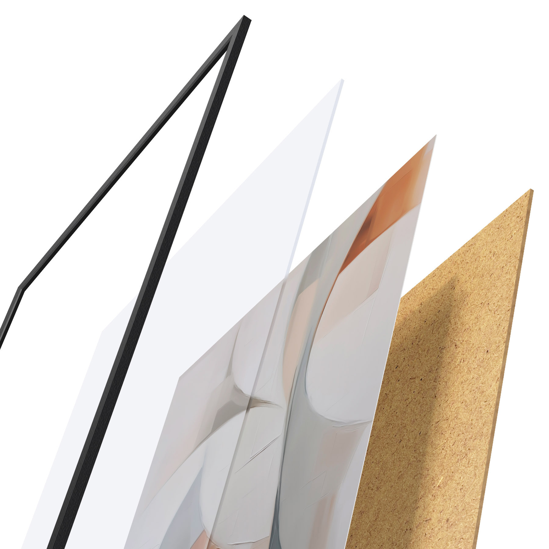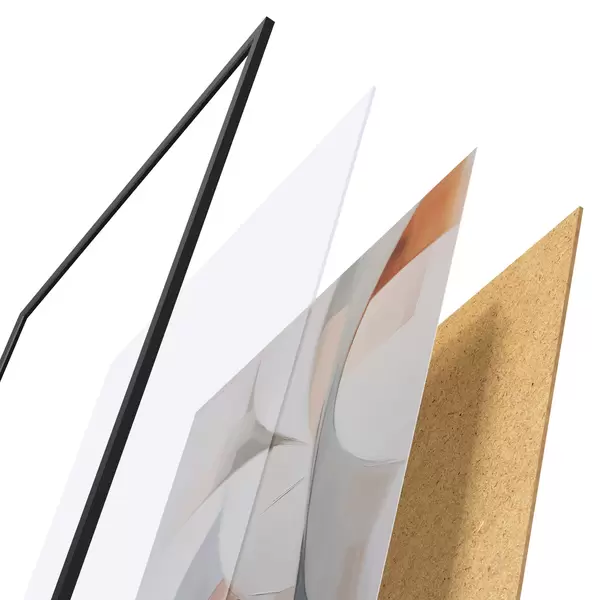 El póster consta de marco, plexiglás, imagen impresa y soporte de aglomerado. El póster puede colgarse inmediatamente en la pared gracias a los soportes de la parte posterior.