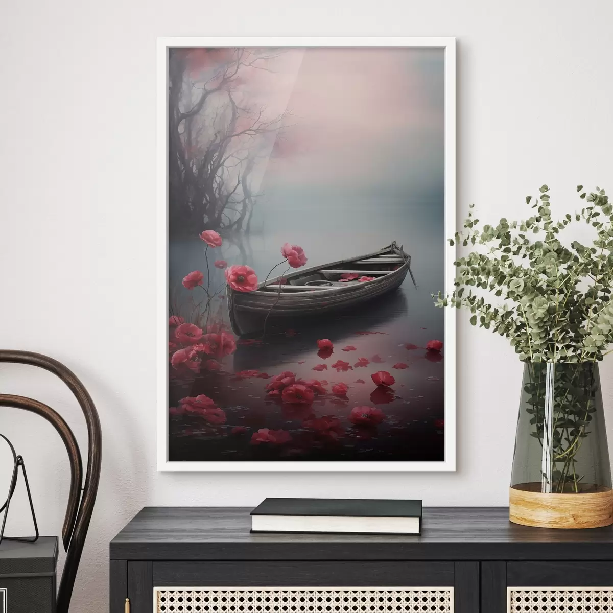 El póster consta de marco, plexiglás, imagen impresa y soporte de aglomerado. El póster puede colgarse inmediatamente en la pared gracias a los soportes de la parte posterior.