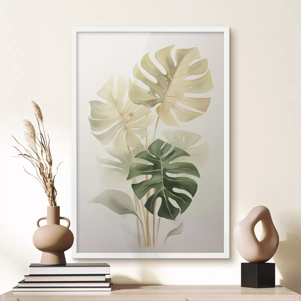 Poster Hojas de Monstera, imitación de acuarela f43209