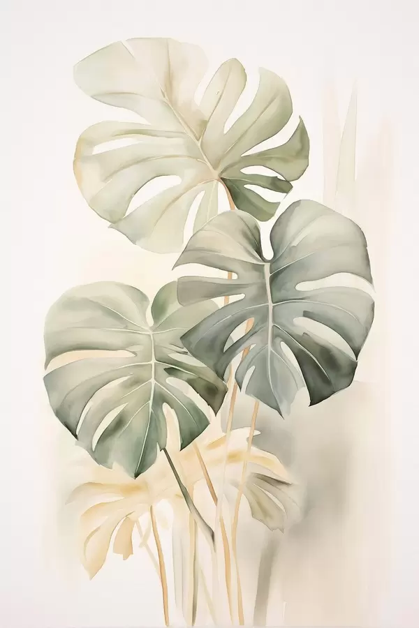 Poster Hojas de Monstera en técnica de acuarela f43210