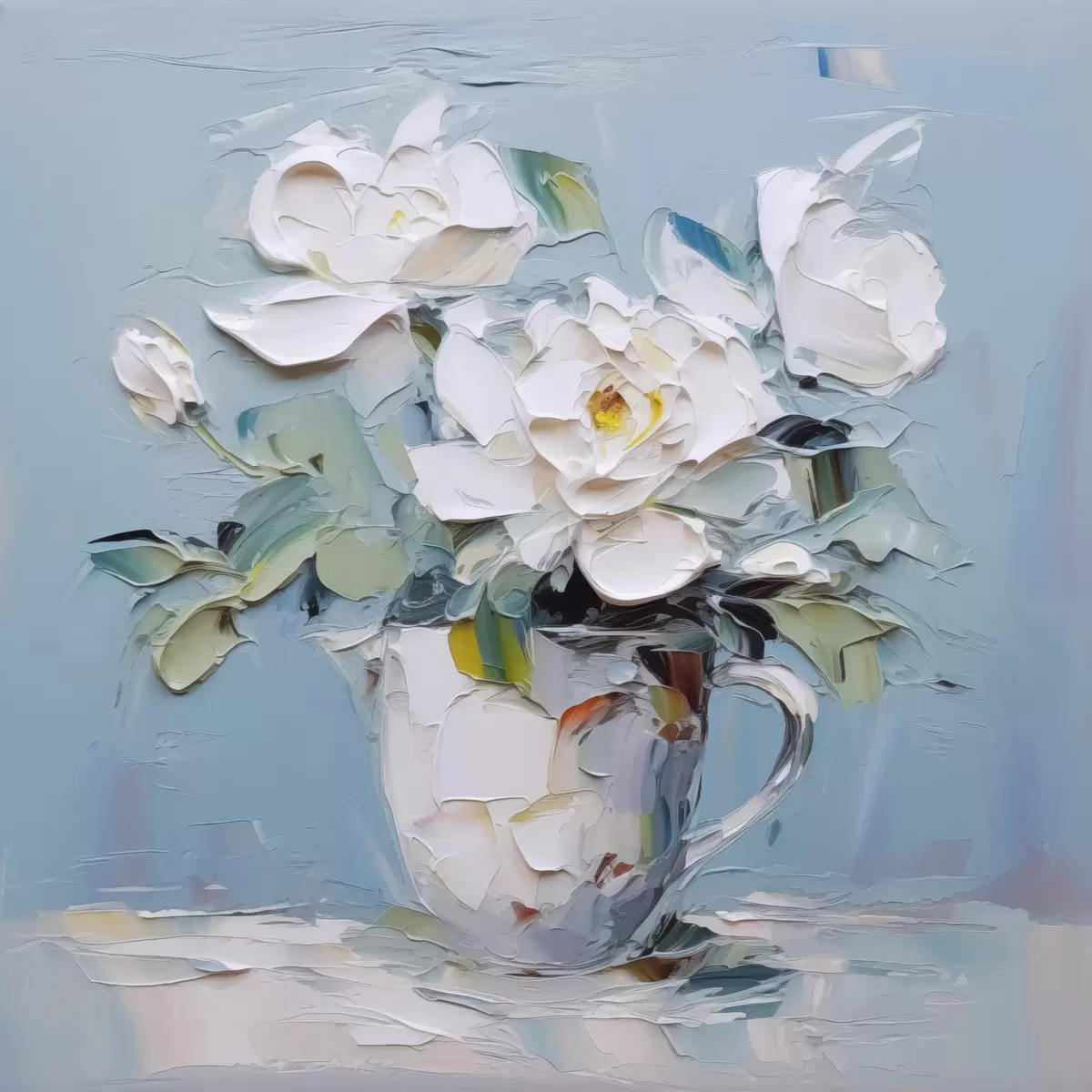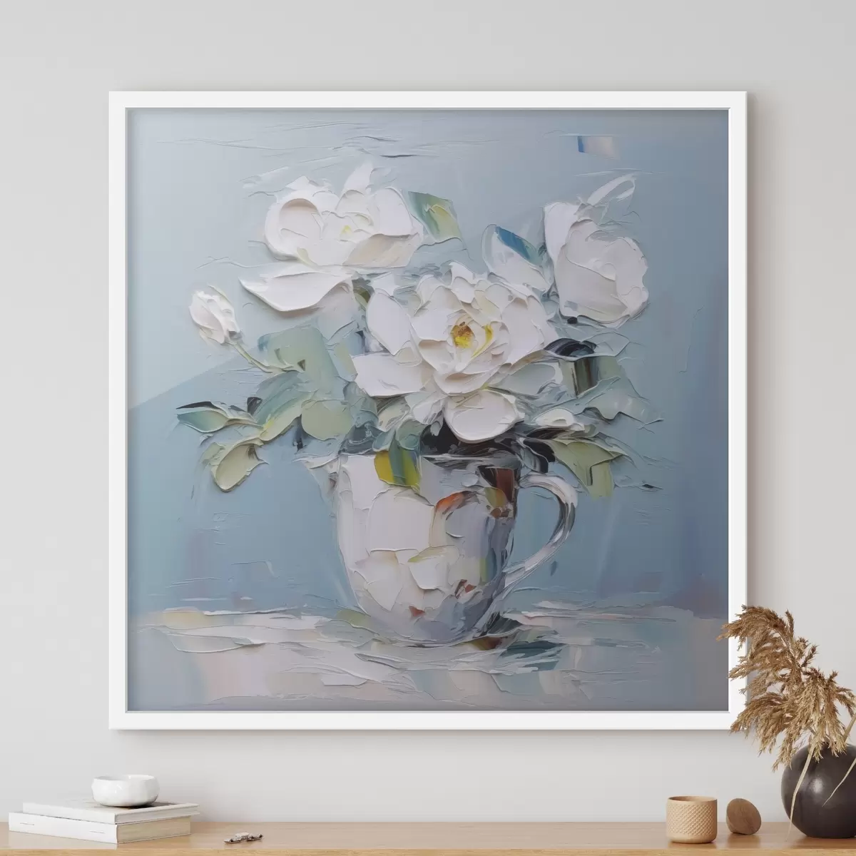 Poster Flores blancas en un cuadro imitación taza Nr f43225