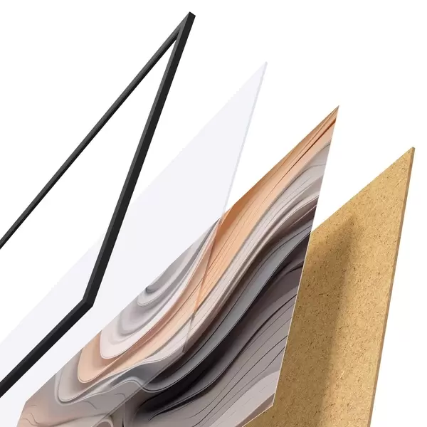 El póster consta de marco, plexiglás, imagen impresa y soporte de aglomerado. El póster puede colgarse inmediatamente en la pared gracias a los soportes de la parte posterior.