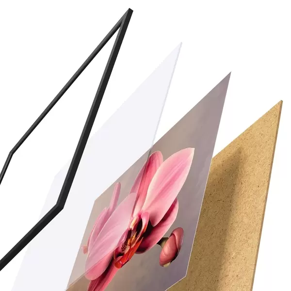 El póster consta de marco, plexiglás, imagen impresa y soporte de aglomerado. El póster puede colgarse inmediatamente en la pared gracias a los soportes de la parte posterior.