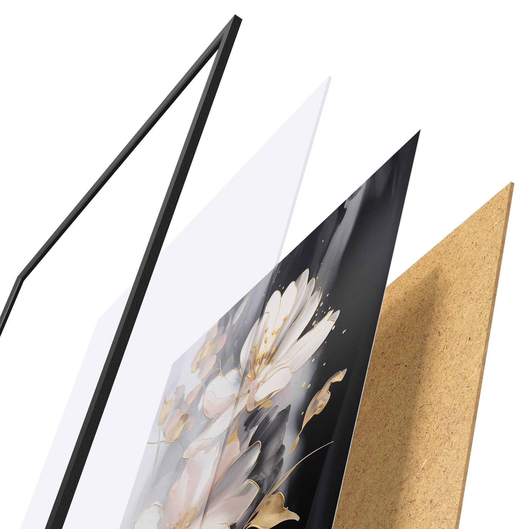 El póster consta de marco, plexiglás, imagen impresa y soporte de aglomerado. El póster puede colgarse inmediatamente en la pared gracias a los soportes de la parte posterior.