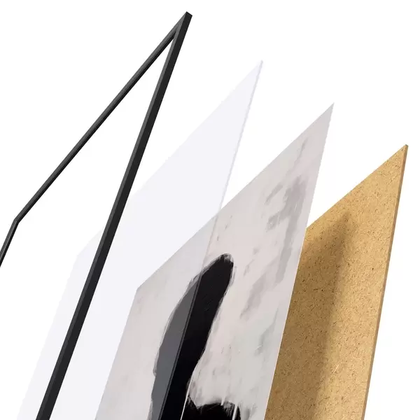 El póster consta de marco, plexiglás, imagen impresa y soporte de aglomerado. El póster puede colgarse inmediatamente en la pared gracias a los soportes de la parte posterior.