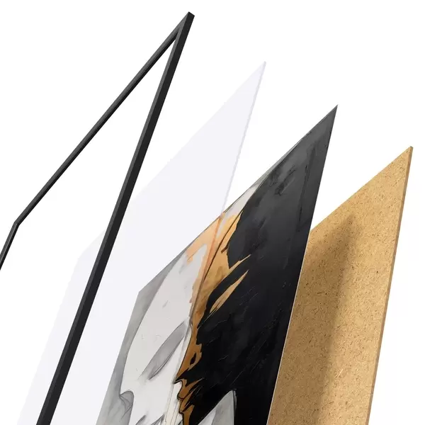 El póster consta de marco, plexiglás, imagen impresa y soporte de aglomerado. El póster puede colgarse inmediatamente en la pared gracias a los soportes de la parte posterior.