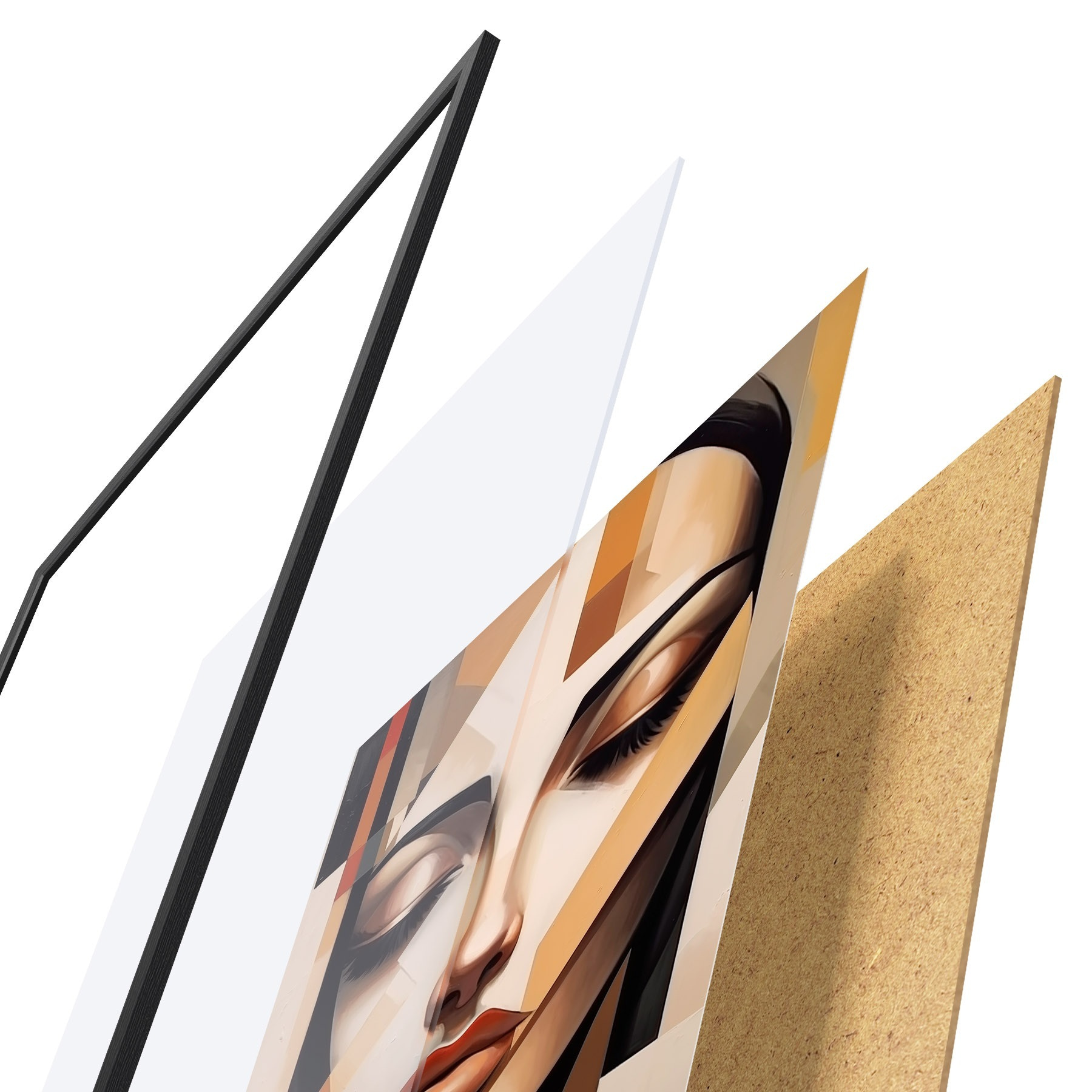 El póster consta de marco, plexiglás, imagen impresa y soporte de aglomerado. El póster puede colgarse inmediatamente en la pared gracias a los soportes de la parte posterior.