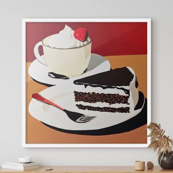 Poster Una taza de café y un trozo de tarta Nr f43293