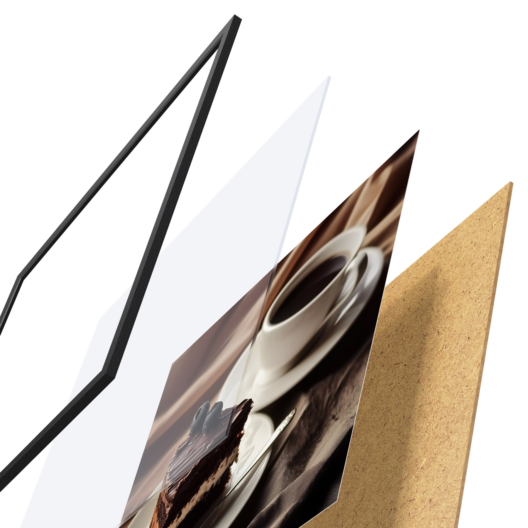 El póster consta de marco, plexiglás, imagen impresa y soporte de aglomerado. El póster puede colgarse inmediatamente en la pared gracias a los soportes de la parte posterior.