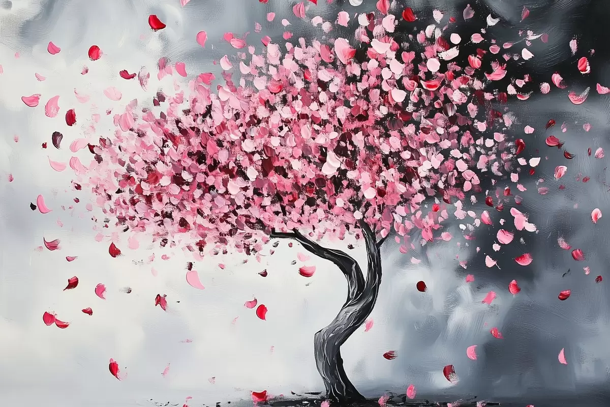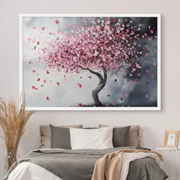 Poster Árbol en flor rosa sobre fondo gris Nr f43299