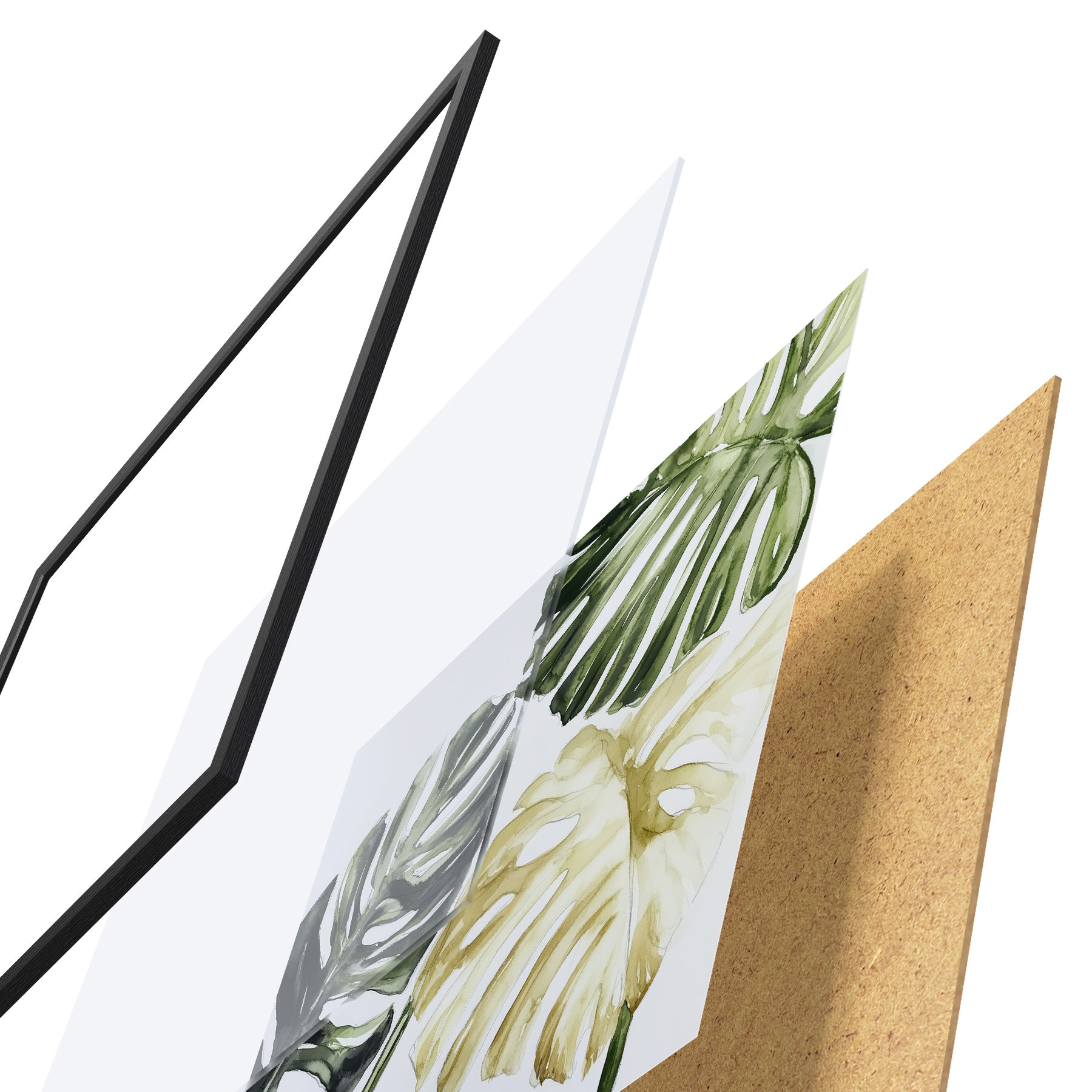 El póster consta de marco, plexiglás, imagen impresa y soporte de aglomerado. El póster puede colgarse inmediatamente en la pared gracias a los soportes de la parte posterior.