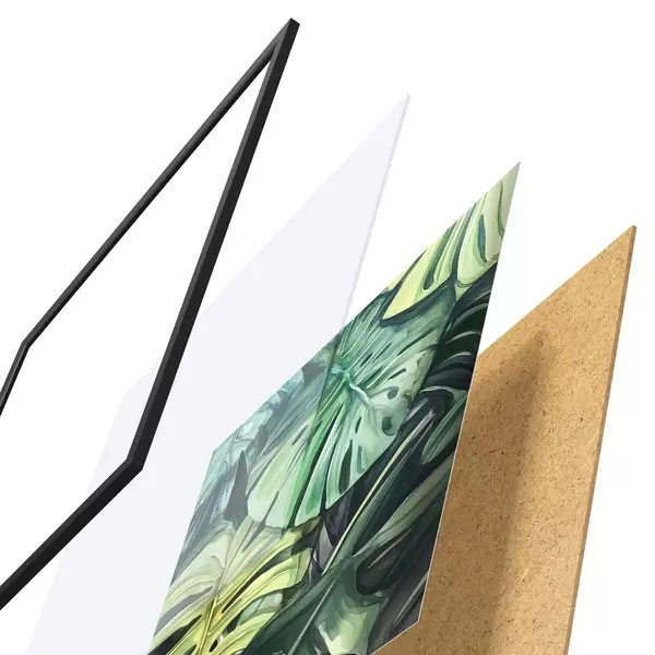 El póster consta de marco, plexiglás, imagen impresa y soporte de aglomerado. El póster puede colgarse inmediatamente en la pared gracias a los soportes de la parte posterior.
