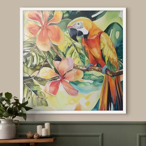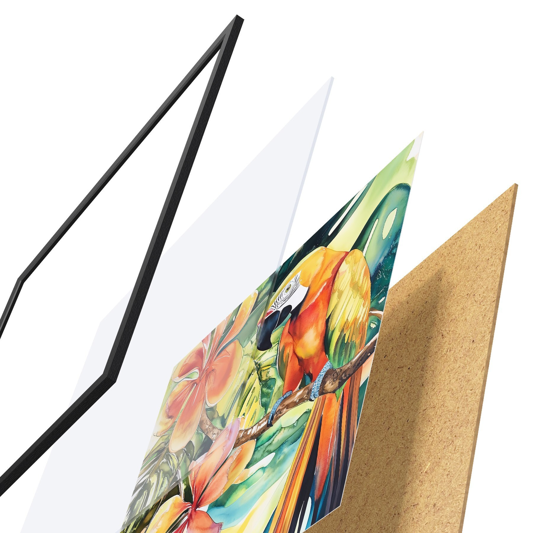 El póster consta de marco, plexiglás, imagen impresa y soporte de aglomerado. El póster puede colgarse inmediatamente en la pared gracias a los soportes de la parte posterior.