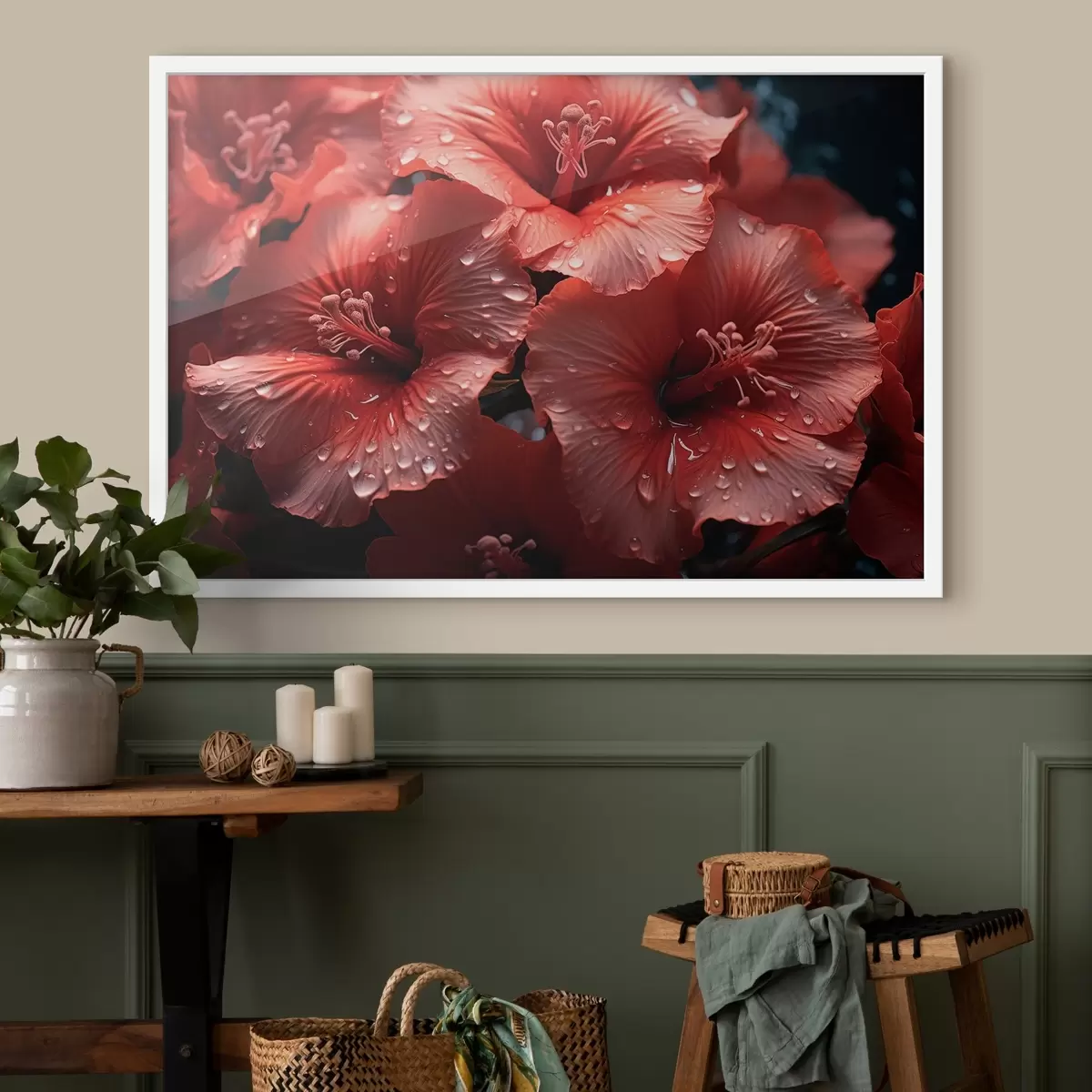 Poster Flores rojas con rocío en los pétalos Nr f43319