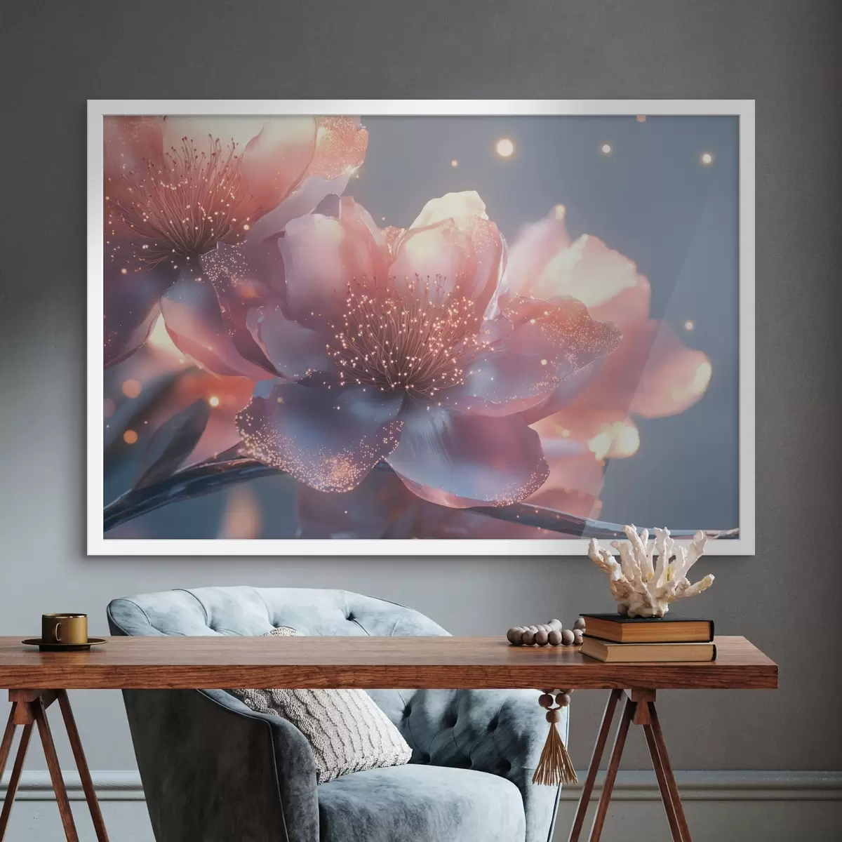 Poster Mágica flor rosa con rayos de sol Nr f43328