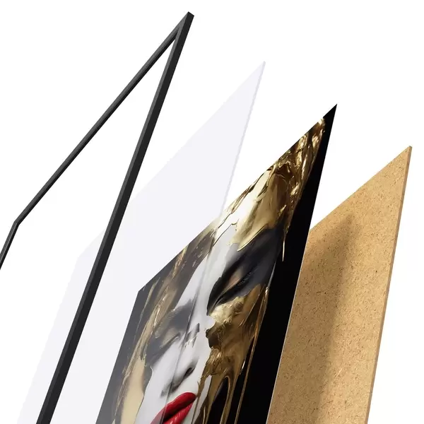 El póster consta de marco, plexiglás, imagen impresa y soporte de aglomerado. El póster puede colgarse inmediatamente en la pared gracias a los soportes de la parte posterior.