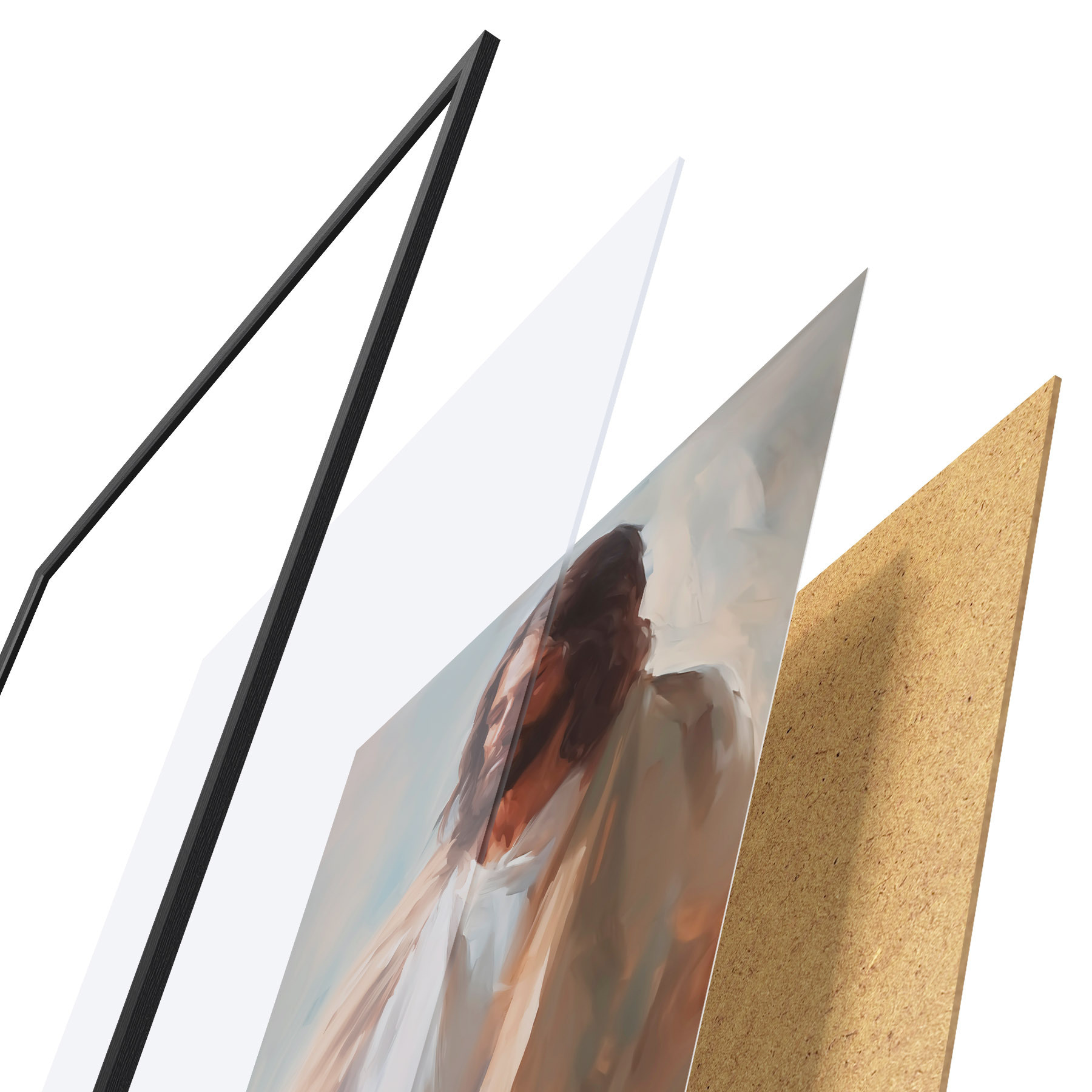 El póster consta de marco, plexiglás, imagen impresa y soporte de aglomerado. El póster puede colgarse inmediatamente en la pared gracias a los soportes de la parte posterior.