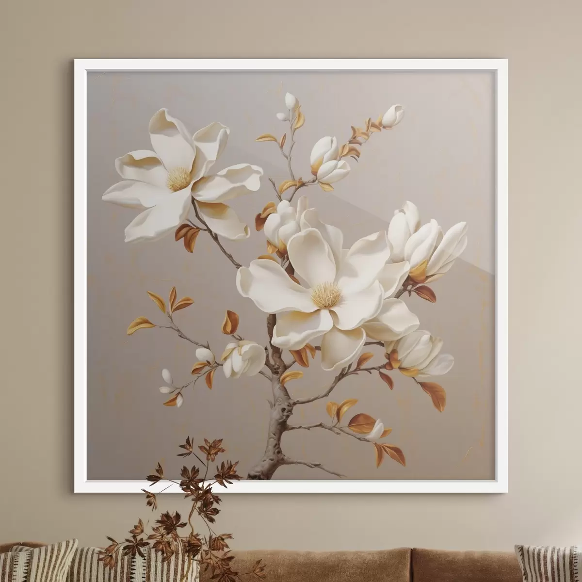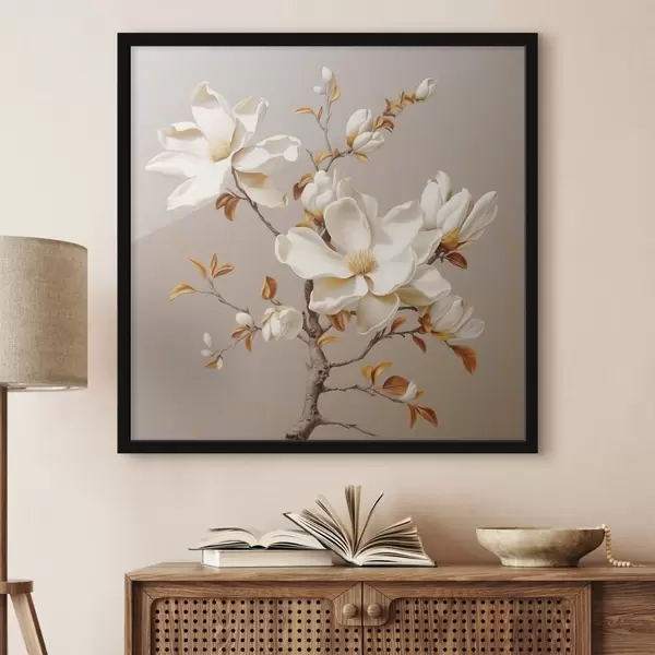 Poster Elegante rama de magnolia en tonos beige Nr f43373
