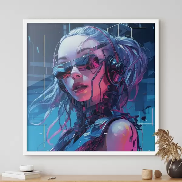 Poster Chica futurista con gafas con efecto de color neón Nr f43381