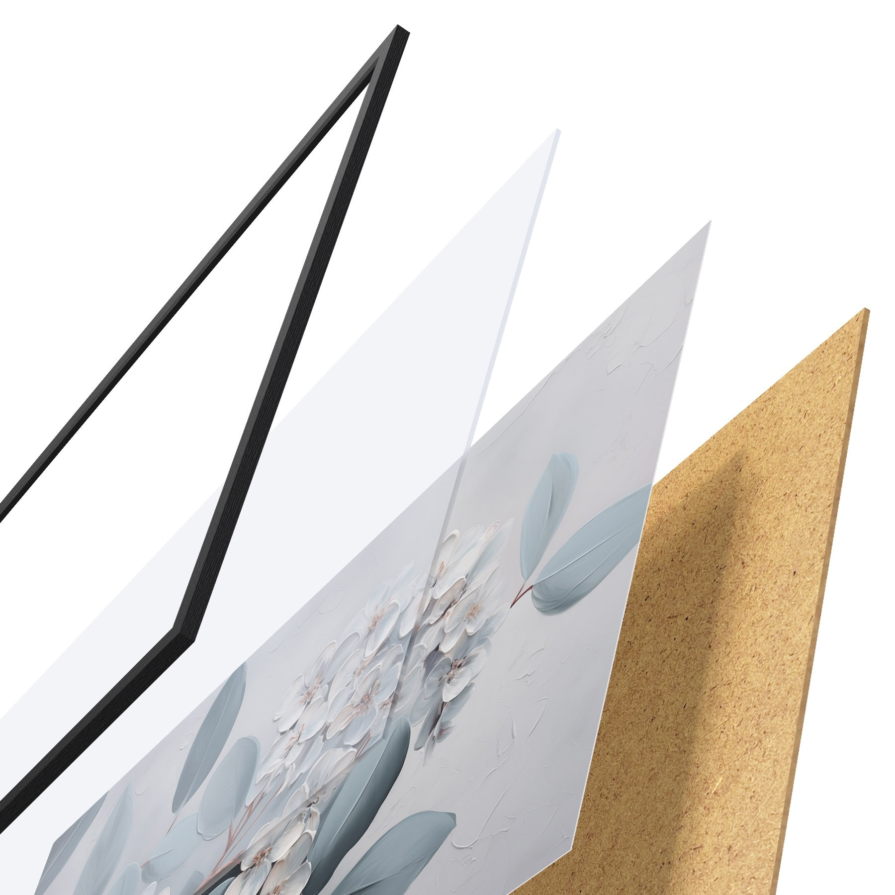 El póster consta de marco, plexiglás, imagen impresa y soporte de aglomerado. El póster puede colgarse inmediatamente en la pared gracias a los soportes de la parte posterior.